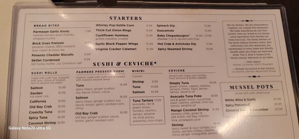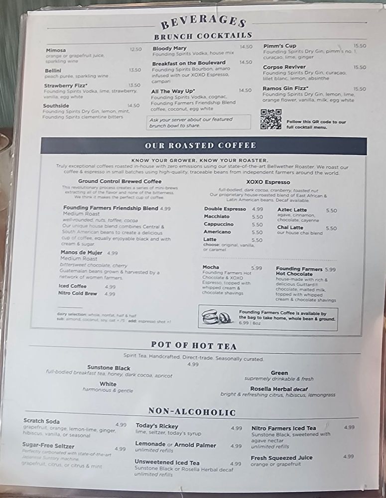 Founding Farmers Fishers & Bakers Menu (Update 2025)
